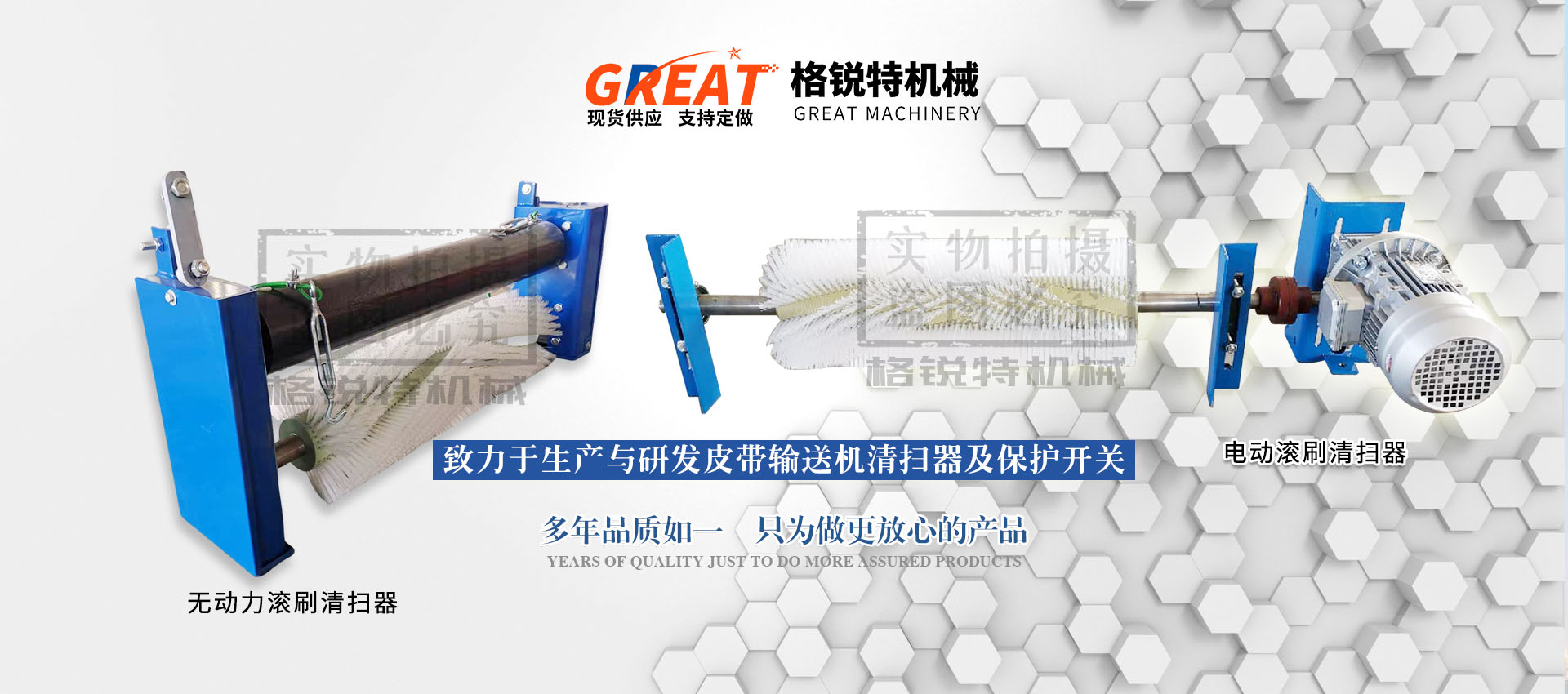 衡水格銳特機(jī)械科技有限公司常年致力于生產(chǎn)與研發(fā)皮帶輸送機(jī)清掃器及保護(hù)開(kāi)關(guān),其中主營(yíng)聚氨酯清掃器,合金清掃器,電動(dòng)滾刷清掃器,機(jī)械式滾刷清掃器,緩沖床,緩沖條,雙向拉繩開(kāi)關(guān),兩級(jí)跑偏開(kāi)關(guān),打滑檢測(cè)器,料流檢測(cè)器等保護(hù)開(kāi)關(guān),常年銷(xiāo)往各大水泥廠(chǎng),煤礦廠(chǎng),電廠(chǎng),輸送機(jī)廠(chǎng)家,質(zhì)量?jī)?yōu)越,價(jià)格實(shí)惠,望各大領(lǐng)導(dǎo)及同行來(lái)廠(chǎng)參觀(guān)指導(dǎo),期待您的光臨!??!